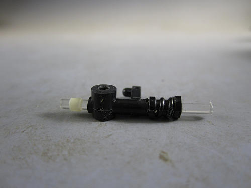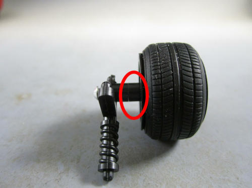 さすがにサスをあれだけ短く切り詰めると画像にあるよう 赤丸内の部分(赤丸内)をよくかさ上げしなければなりません。 実施しないとサスのパーツが下に移動してしまいフェンダー内から 外れてしまう可能性があります。 サスのパーツが上下に移動しないよう前述した赤丸内をかさ上げにしますが ガレやまは面倒なので次の方法をとります。 | プラ棒で作成した突起部分にアドラーズネストの『アーマーカラー』を 差し込んでサスが上下にずれないようにしました。 こっちの方が楽チンですが前述の赤丸内のかさ上げ量にもよりますね。 さてフロントサスの加工はこんなもんで終了です。 |