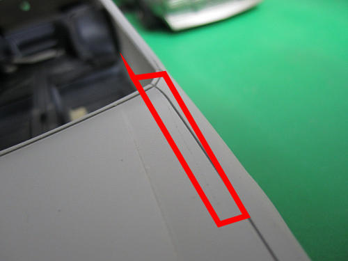 | この画像は左フェンダーなのですが、赤枠内に変なラインが存在します。