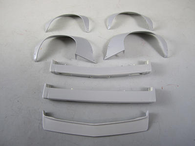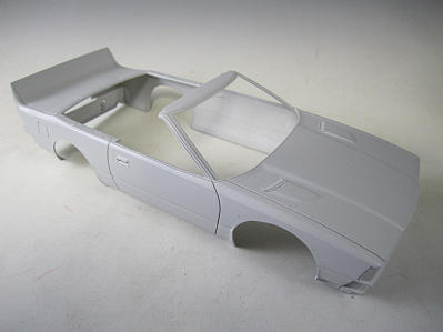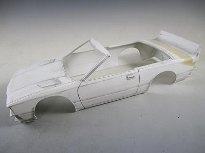 チンスポ、ワークスフェンダー、バンパーにサフを吹き吹き。。。 ボディにも同様にサフを吹いて塗装準備完了。