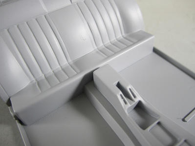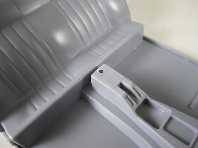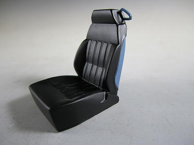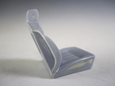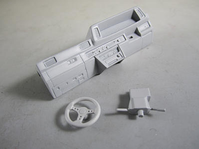 さてこちらはキットのシート。 ダッシューボードにサフを吹いた画像。 前後で貼り合わせるのですが、合わせ目が雑なのでヒケと併せてパテ盛って修正。 ハンドルはずアオシマの改パーツに付いている小径ハンドルを使用します。 ちなみにノーマルのシートは助手席のみ使用します。
