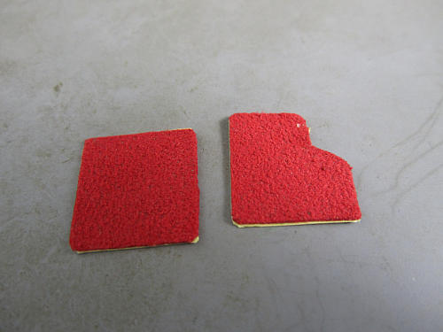 お次は内装のフロア部分を。。。 フロアマット作ります。 DT-Magicから販売されているアルカンターラの赤を使用します。 | 特に凝ったことはやってません。 それっぽい形を作って貼りつけるだけです。 |