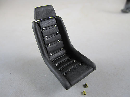 久々の更新。。。 今回で内装を終了させます。 こちらはアオシマの改パーツシリーズのバケットシートです。 高さが足りないのでシートの底部分に1ミリ各のプラ棒を接着し 高さを稼いでいます。 シートの凹部分にあった丸いモールドは穴を開けて削除。 |