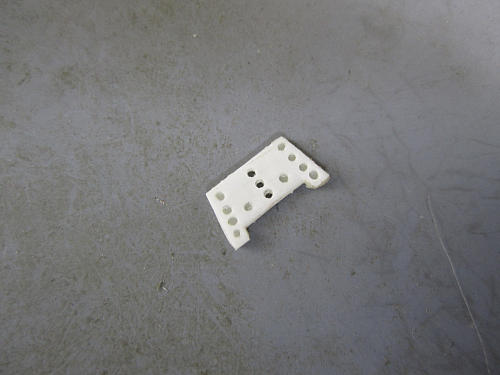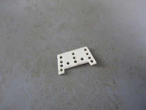 こちらは何て言うパーツかはわかりませんが、 シート前方の下に存在するパーツとなります。 実車は少々固めのラバーだと思います。 画像のように穴が開いているのですが、貫通した穴は真ん中の3つのみです。 なのでセンターの穴を残して裏からプラ版を貼ります。 御覧の通り貫通しているのはセンターのみで他は窪んだ状態です。![]()