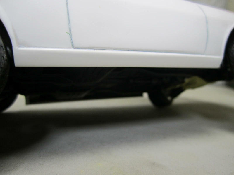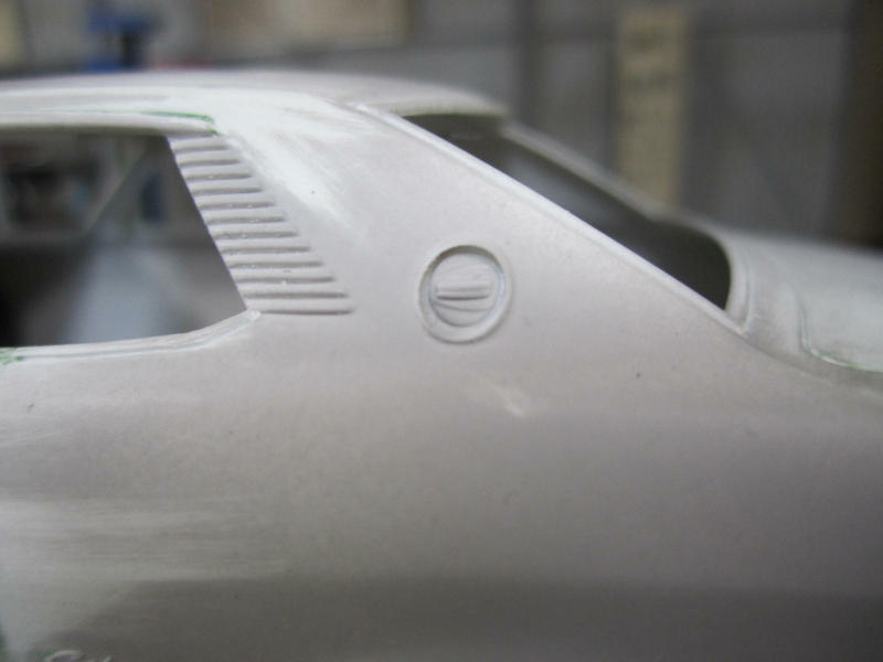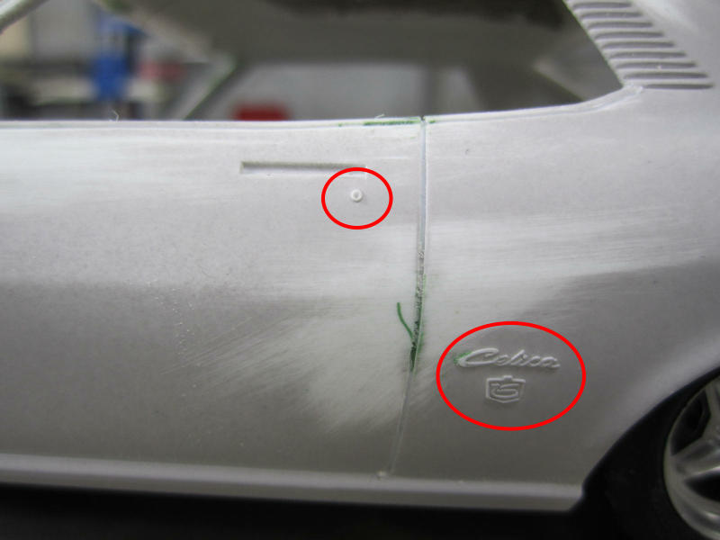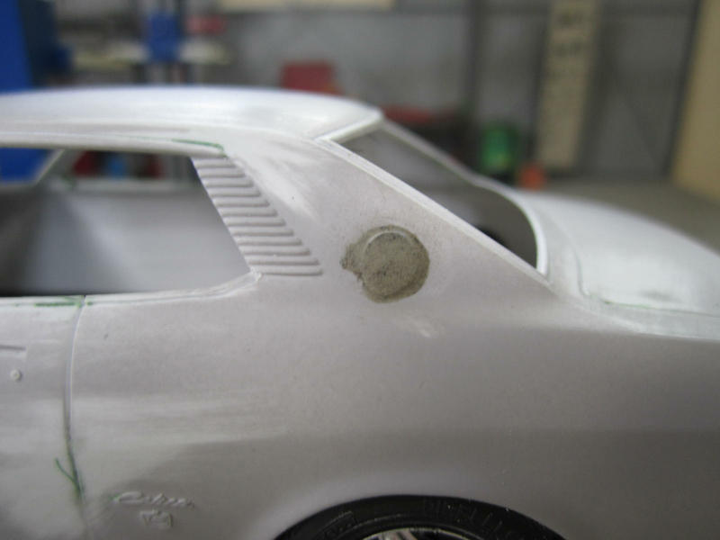 まずはボディで気になるところを修正していきます。 初めに給油口の位置から。 Cピラーの中心にありますが、もう少しリアウィンド側に位置するので変更します。 |