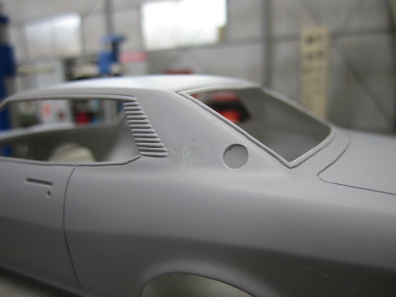 こちらも前回パテで塞いだ給油口。 位置を後ろにずらし穴を開けました キットの物と大きさが違いますが実車はこのくらいだと思います。