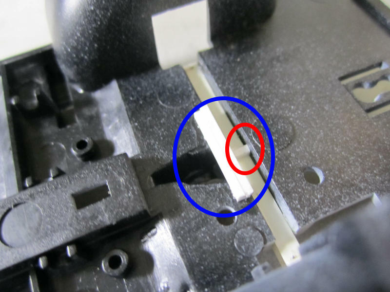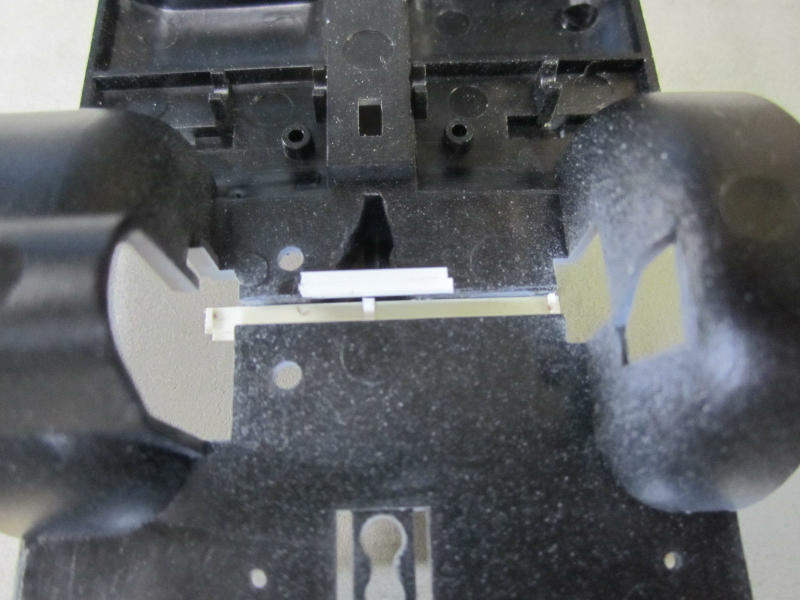 さて、車高を下げるためシャーシにある車軸受けをプラ棒でかさ上げして上げます。 |