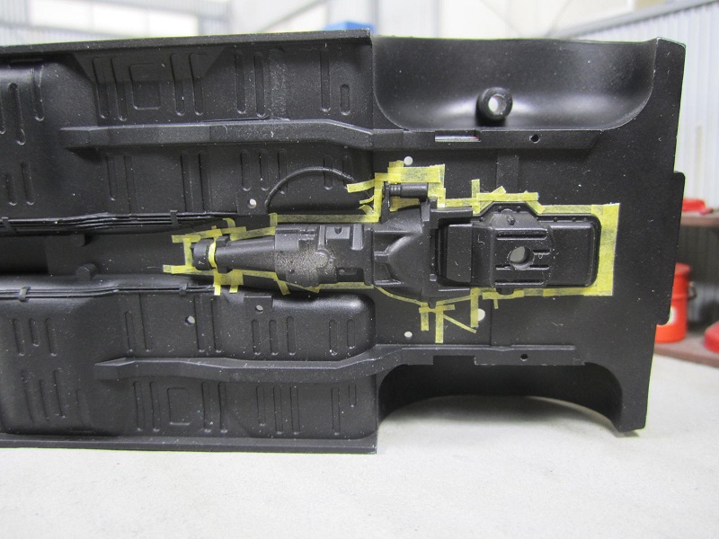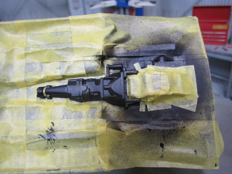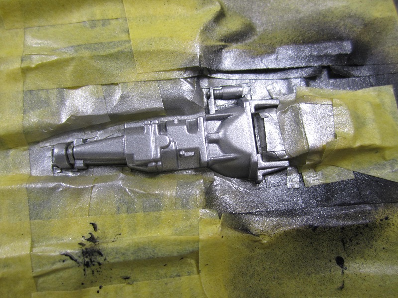 このようにマスキングしたらミッションケースを塗装していきます。 |