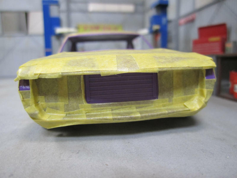 ボフロントは左右のウィンカー部分とラジエターを塗装するのでこんな感じになっています。 このキットをインスト通りに組み上げる場合、ラジエターを塗装してもグリルが塞がっているので 見えなくなってしまいますが、今回グリルをメッシュかするので塗装しておきます。 |