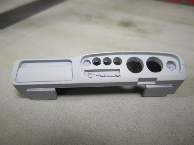 こちらはダッシュボード正面。 モールドもしっかりしていて結構好きです。 メーターは透明パーツで裏から嵌めこむタイプ。 きれいに塗装するのが大変そうです。 |