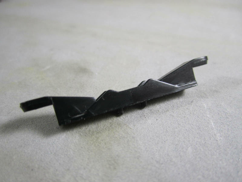 キットのフロント足回りパーツの一部。 ロアアームが一体となった部分ですが、車高を下げると 左右張り出し(ロアアーム)が地面に接触するのでハの字と合わせ加工します。 |