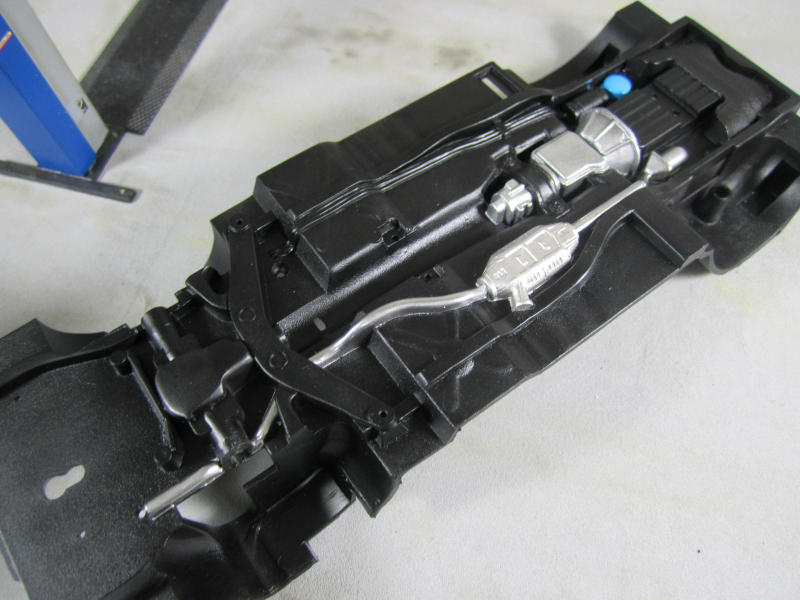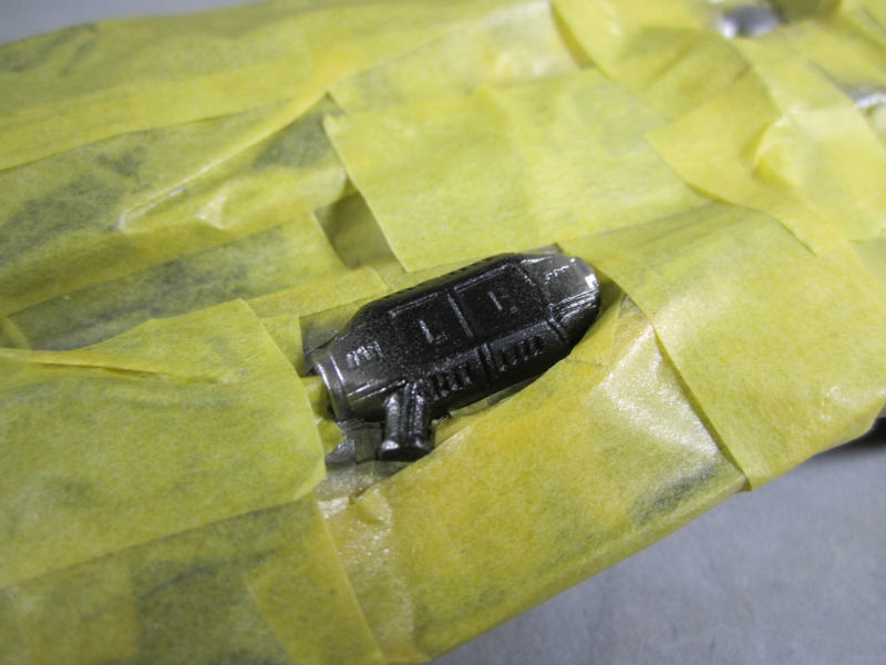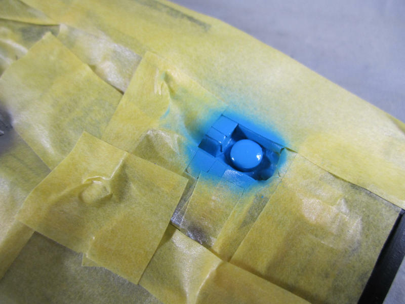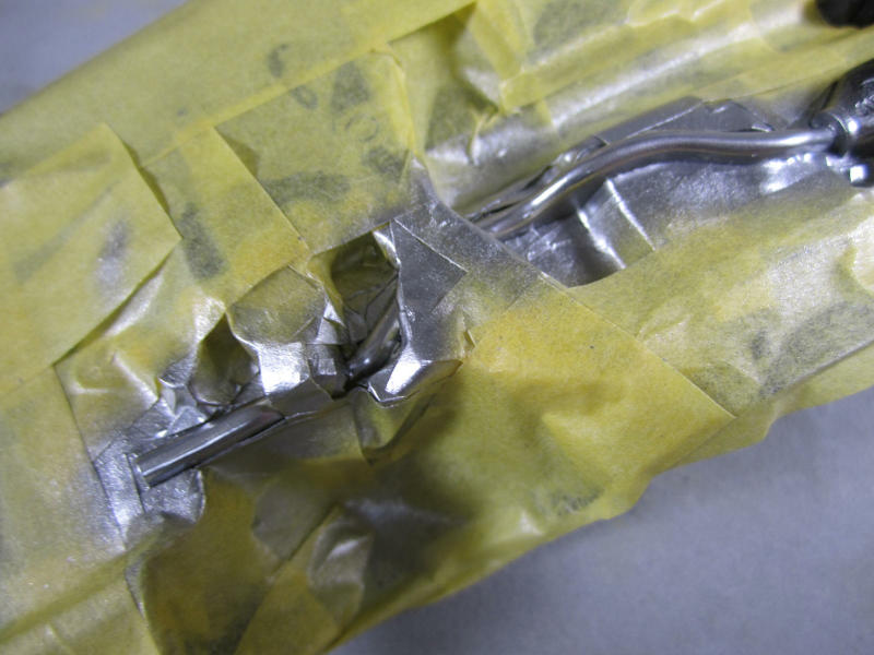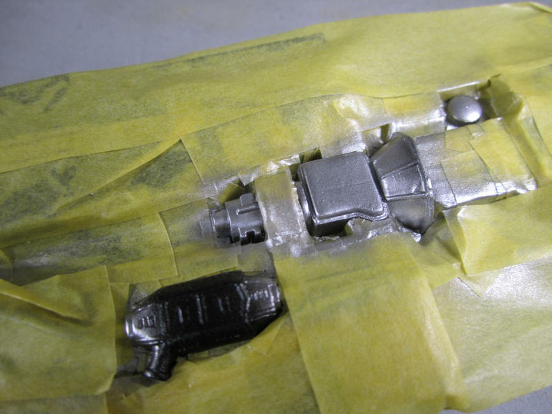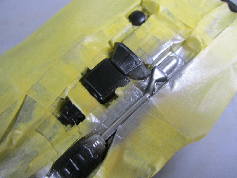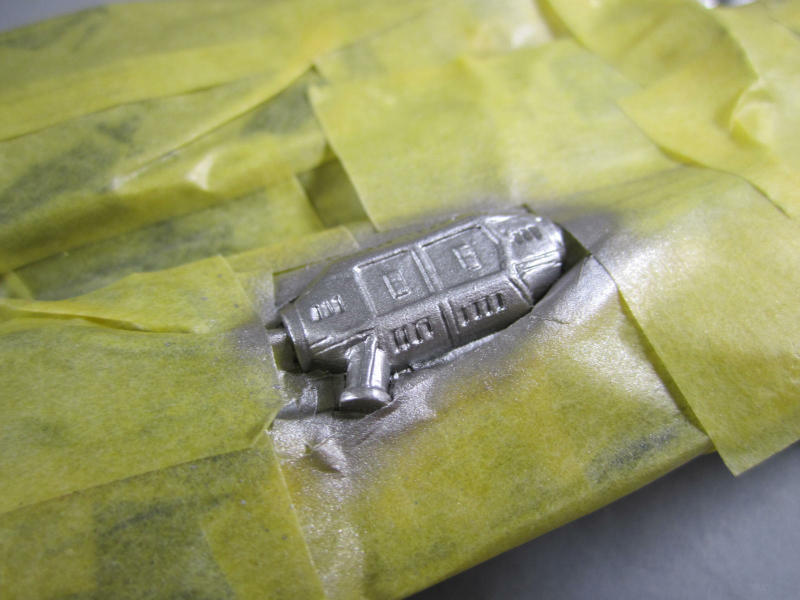 メッキシルバーが乾燥したらご覧のようにマスキング。 今度はギアボックスを塗装します。 |