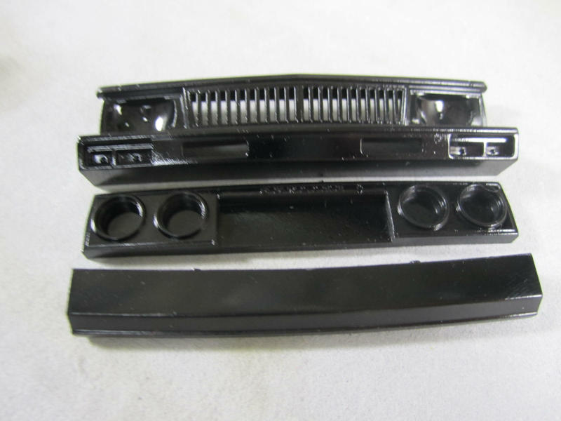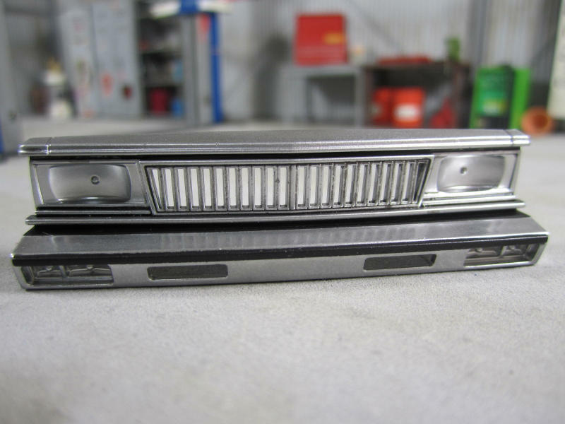 こちらも前回メッキを剥がしたフロントグリル、テールパネル、リアバンパー。 ホイール同様、下地処理としてピュアブラックを吹いてあげました。 |
