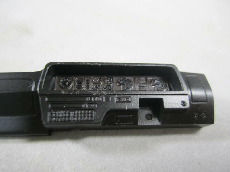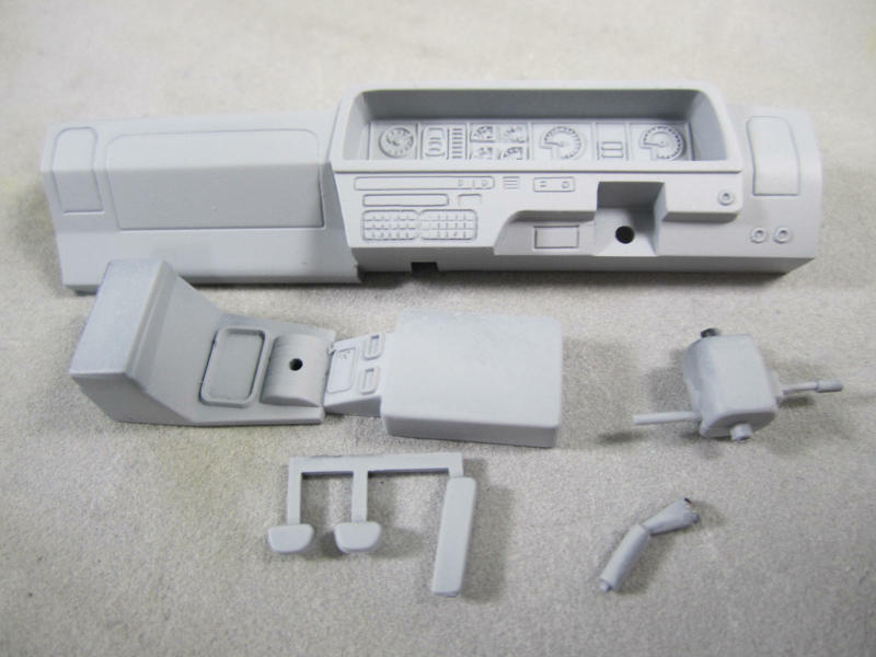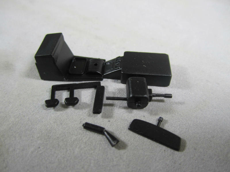 こちらがダッシュボード。 全体的にセミグロスブラックを吹いたのですが、メータの塗り分けが残っています。 デカールもついてはいるのですが、塗り分けます。 |
