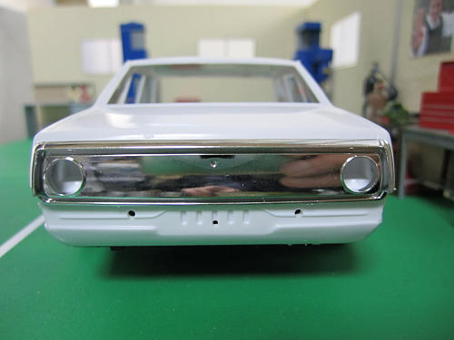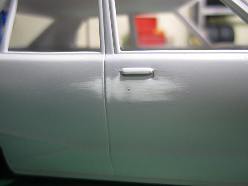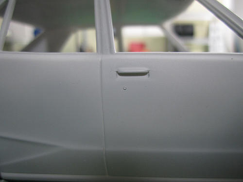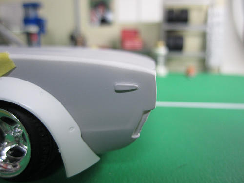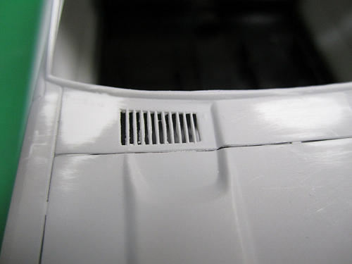 | いつものようにカウルトップに存在するスリットに穴を開けてあげました。。 それとキットではワイパーの基部がモールドとして存在していましたが そちらも邪魔なので削除しています。 |