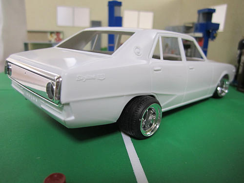 今回からスタートするのはアオシマのグラチャン’89シリーズから ケンメリ4Drの水野ワークスです。 画像はノーマルボディですがワークスフェンダーが付きます。 このキットをどのようにしようか考え中ですが、 前回のガゼールのような感じになるのではないかと思います。 |
