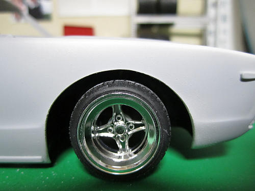 ノーマルフェンダーを横から見た図。 車高はもっと下がるのでフェンダーのカット量は上方向に結構カットします。 |