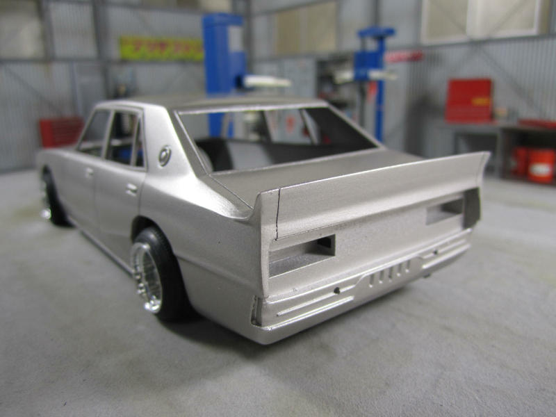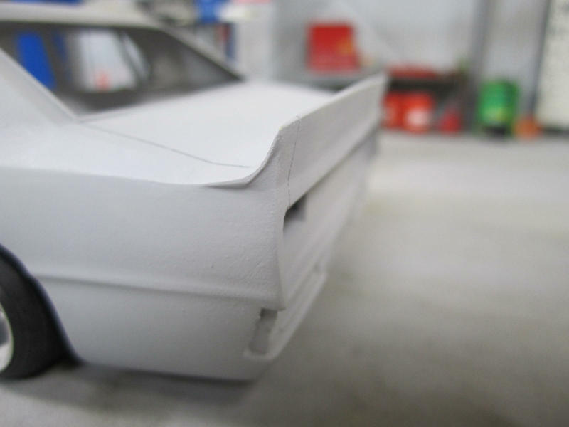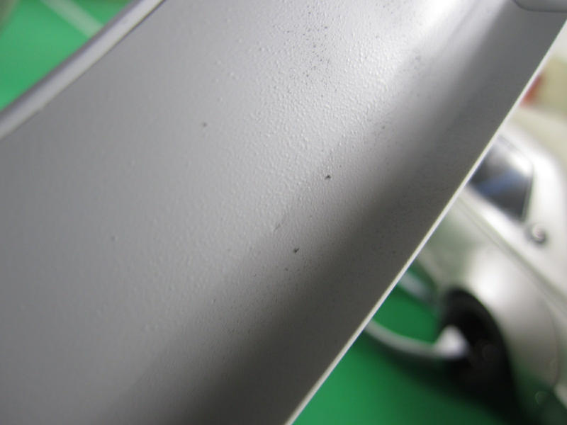 前回リアスポイラーのパテ埋めを行いましたが 状態を確かめるためにサフを吹いてみました。 画像でもわかる通り上手く処理が出来ていません。。。 |