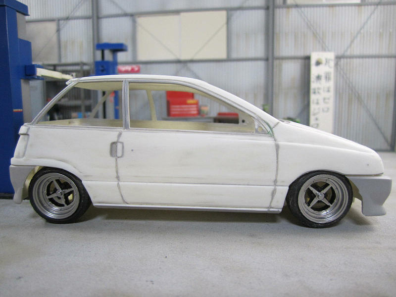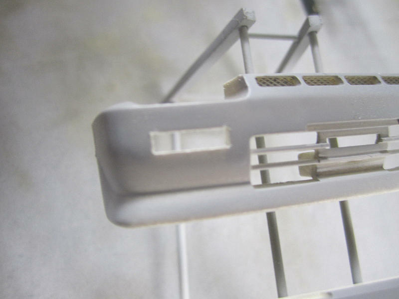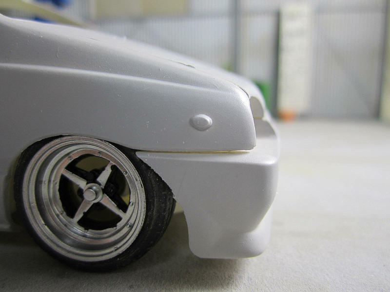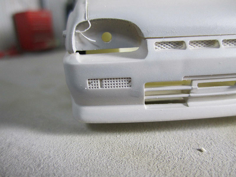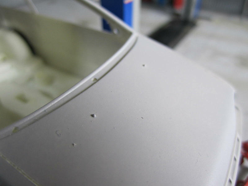ボンネットのノズルも同様。 | そんな訳でボディ本体はモールドを深くしてから、800番のサンドペーパーで全体を鳴らしました。 前後のバンパーはこれからです。。 |