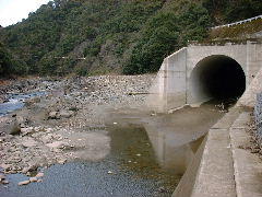工事中に使う迂回水路と思われるが、ダム本体以外は相当工事が進行していた。 周囲の風景に全くなじまないものだ。 |