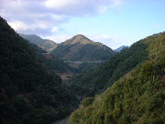 見渡す限りの森林であるが、ダムの付け替え道路等の工事は相当進んでいる。実際、付近を工事用ダンプがひっきりなしに走っていた。森林もあまりよい状態ではないようだ。 |