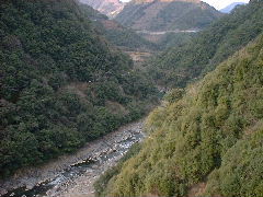 深い谷だが、この高さからでもエメラルドグリーンの流れが分かる。 |