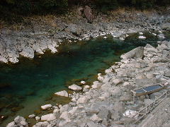 水の透明度の高さがすごい。渕はクッキリとエメラルドグリーン。 |