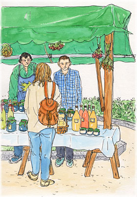 チロルの秋祭り アルムアプトリープが行われるザンクト・ヨハンの町へ行きました。 広場には骨董品や農産物を売るマーケットが。