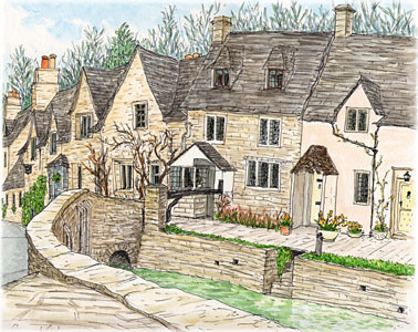 カースルクームの朝。橋のたもとでスケッチしていたら、馬に乗った女性が通り過ぎて行きました。 朝のお散歩かな?