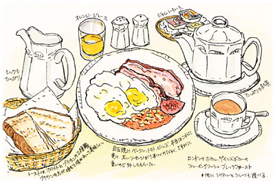 ロンドンのホテルの朝食はボリュームたっぷり。最初の朝に食べきれず、翌朝から少し減らしてもらいました。
