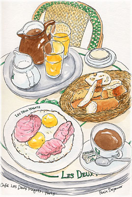 ここは老舗のカフェ・ドゥ・マゴ。スケッチにはとてもいい雰囲気だけど、味はまあまあでした。