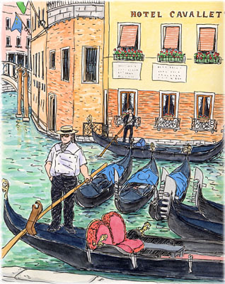 オルセオロ運河のゴンドラ溜り。 暇なゴンドリエーレがゴンドラの形について講義してくれました。