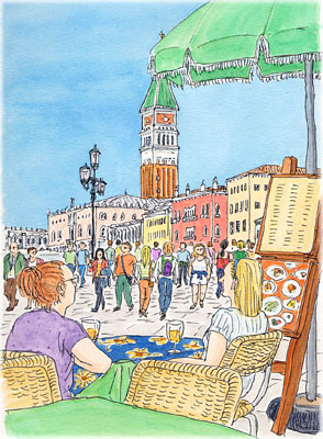スキャヴォーニ河岸には観光客向けのカフェが軒を連ねています。 眺めに釣られて入ったら、ひどく不味い料理が出て来てがっかり。でも この風景ですからね。味の方は妥協しましょう…。