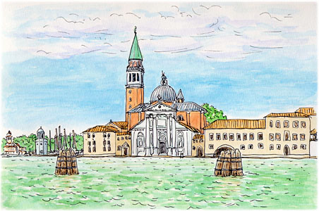 海の税関の裏から眺めた、サン・ジョルジョ・マジョーレ島。