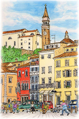 ピランの中心タルティーニ広場は、かつてピランの内港だったのが19世紀後半に埋め立てられ、今はピランの人々の憩いの場所になっています。