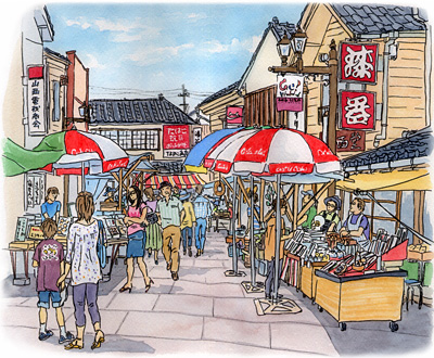 輪島の朝市。 お魚だけじゃなくて、有名な輪島漆器のお店などもあります。