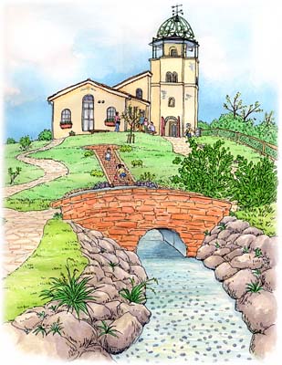 丘の上の教会か村役場?…かと思うような、この建物は展望台。ソレイユの丘の全景と海が見渡せます。