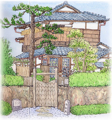 住吉川の畔に、周囲をマンションに囲まれて建つ古い日本家屋。谷崎潤一郎が『細雪』を書いた家です。 私が生まれた家はこのすぐ近く。当時はここと似たような古い日本家屋でしたが、今はモダンな洋風家屋に建て変えられています。