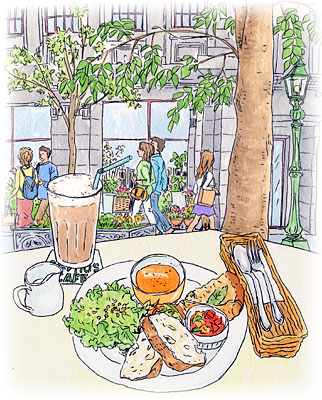 休日の午後。神戸元町のカフェで、ワンプレートランチを食べながらのスケッチです。