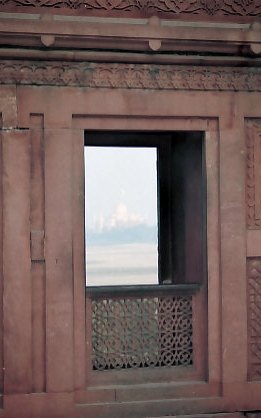 晩年になるとシャー・ジャハーンは息子のアウラングゼーブによってアーグラ城に幽閉されます。彼は居室から遠くタージを眺め、亡き妻ムムターズとの想い出に浸りながら失意の日々を過ごしたといいます。ちょうどこんな光景だったのでしょう。どんな相克があったのかはわかりませんが、想像するだけで胸が痛くなります。