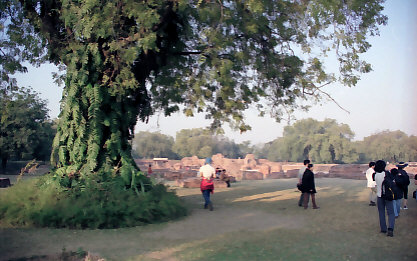 釈迦の教えはやがて世界に広まり、多くの人々の心に染み込んでいきます。仏教の誕生です。それを聞いていたのかいないのか、枝の伸び方といい葉の茂り方といい、サールナートに生えている樹はどれもみな妙に年季を感じさせます。実際に釈迦を目撃した樹も何本かあるに違いありません。