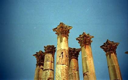 抜けるほど青い空に何本も並んで突き出す列柱。これもジェラシュを象徴する構図でしょう。ローマ遺跡の真髄は柱にあり、と思わせる眺めです。