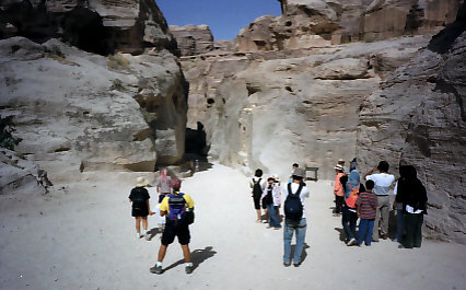 馬を降りると、いよいよ両側を岩に囲まれた狭い道「シーク」の入口です。あまりに狭いので、このロータリーで行き止まりなのかと迷ってしまった。