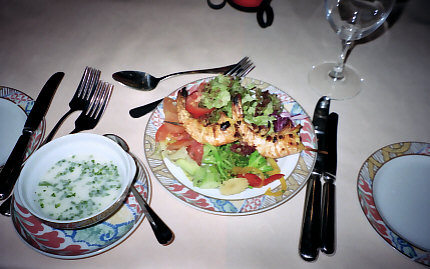 ディナーはプールサイドのテラスでバーベキュー。この地域には珍しく海老がふんだんに出回っていました。日本人の団体が来たのでサービスしてくれたのかな。