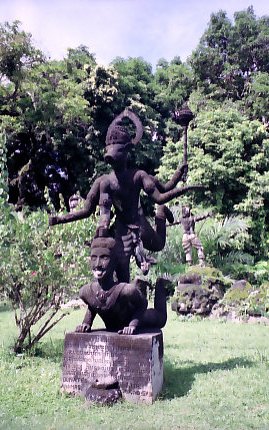 | ヴィエンチャン観光のハイライト。市内から車で30分あまり、メコン川沿いにある仏像のテーマパーク。敬虔な仏教徒によって造られた高尚な施設なのかと思いきや、その実態は……だめだ、笑いが込み上げてくる。 |