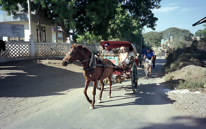 自転車も楽しいけど、馬車に乗っての観光もお勧め。チャーターして、好きなところに連れて行ってもらいましょう。値段も安いし、何より風情があるじゃないですか。