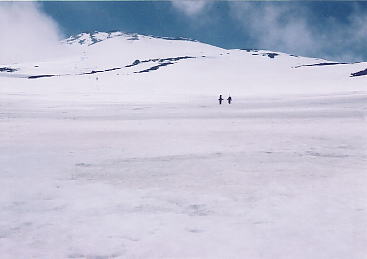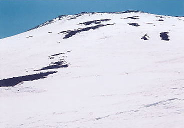田植えの始まった水田。御殿場から。 ふじあざみライン・新五合目駐車場からの眺め。 富士山は午後になると、こんな感じの雲がもくもくと湧いてくる。発達して積乱雲(入道雲)になると、落雷やヒョウをもたらすので要注意。 広い斜面。頂上はまだ遠い。 8合目から山頂。ここからも、まだ標高で300m以上登らなくては頂上にたどり着けない。 滑りが目的なので、余力を残してここからドロップ。 滑ってきた斜面を振り返る。標高差1000m以上の大滑降。