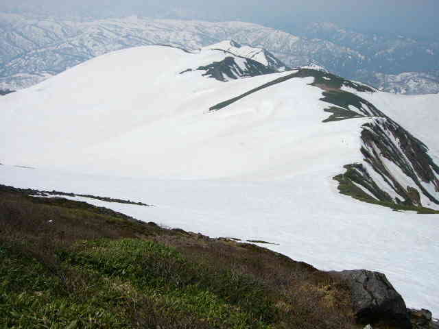 雪は鍛冶小屋の下から付いていました。 牛首に向けてハイクアップ。 山頂から姥ヶ岳。ダイレクトにスキー場に戻るラインはトラバース道場。
