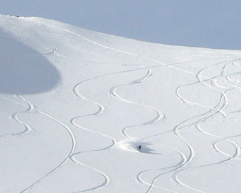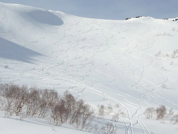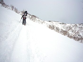栂の森から白馬乗鞍岳。 天狗原の登り。南面はサンクラスト。 唐松、五竜、鹿島槍を望む。 天狗原の雪原を行く。 白馬乗鞍岳山頂から小蓮華、白馬岳方面。 白馬乗鞍岳の大斜面。 rider:K-san 雪質は快適なパウダー! rider:K-san 思い思いのトラックが刻まれた斜面。
