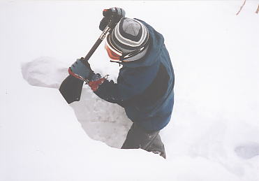 シャベルで安定した層になる深さまで雪を掘り出します。