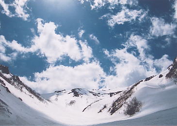 針ノ木雪渓の登り。いちばん奥、中央のピークが針ノ木岳(2821m)。 蓮華岳大沢。 針ノ木雪渓から爺ヶ岳。 スバリ岳からの稜線。 赤沢岳方面。 雲湧く針ノ木峠。